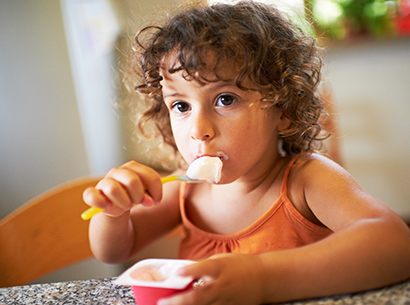 Give me a small spoon or fork and a small plate and cup. I may still be a little messy when I eat. I am learning!