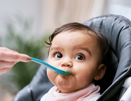 Cuando tenga aproximadamente 6 meses, podré empezar a comer alimentos sólidos. Dámelos despacio. Si nuestra familia sufre de alergias o nací antes de tiempo, habla con mi proveedor de atención médica o con WIC antes de que empiece a comer alimentos sólidos.