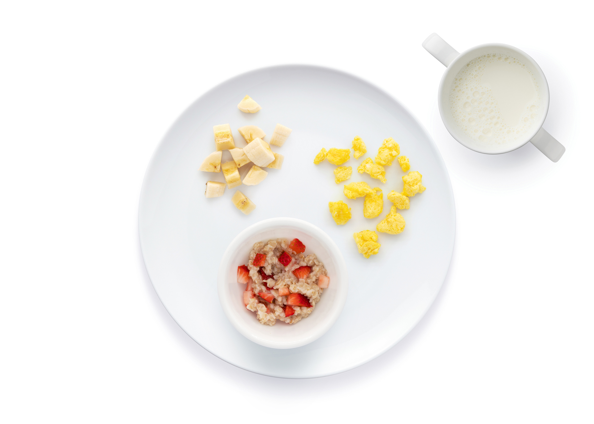 Coloca mi comida en un plato pequeño y dámela con una cuchara para bebés.