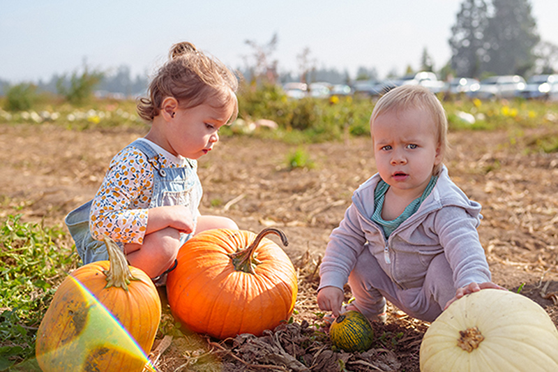 Walking through the fields and picking pumpkins.