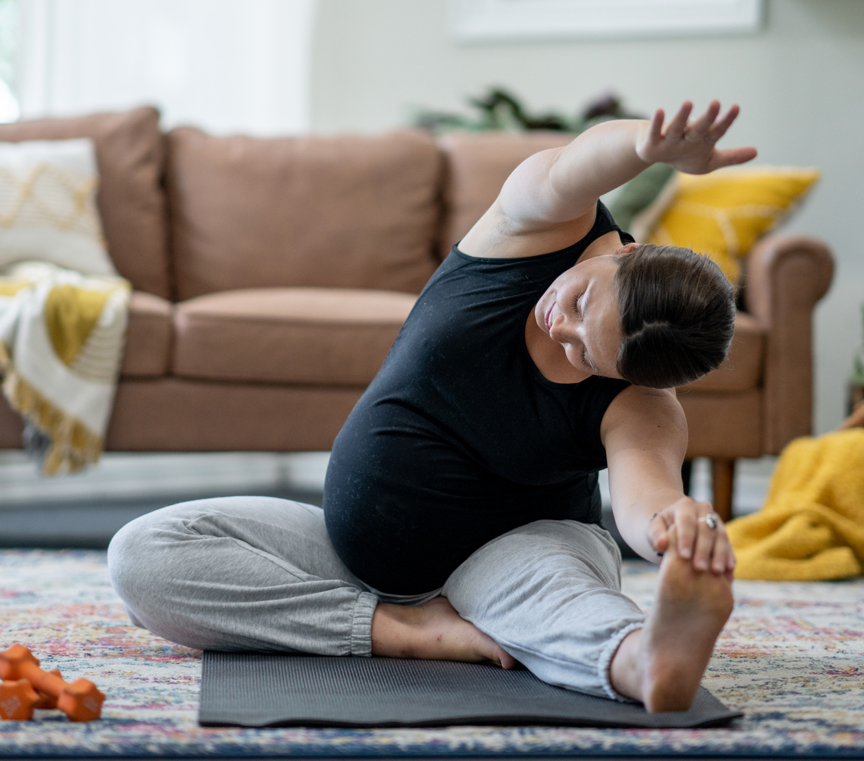 Postpartum yoga, stretching & strength training.