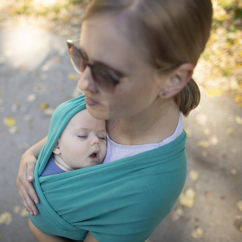 Wearing your newborn baby in a sling, wrap, or carrier that supports their head and neck is a great idea! It allows you to do things with your hands free, like chores, shopping, or walking. Being close to your baby helps you know when they’re hungry and gives you both comfort. Your baby feels secure when they see your face, hear your voice, and feel your touch. Some studies even say that wearing your baby can help them cry less.