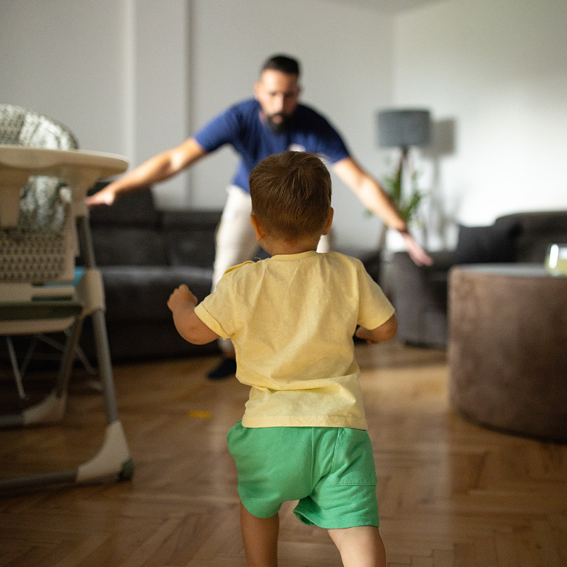Gently chase your toddler around a safe space. Let them “catch” you!